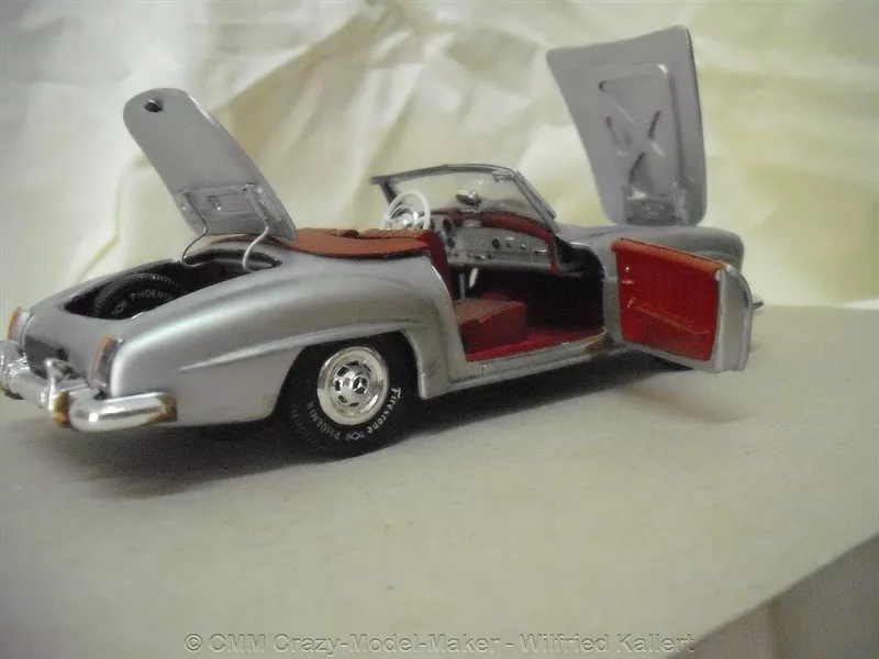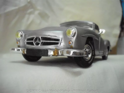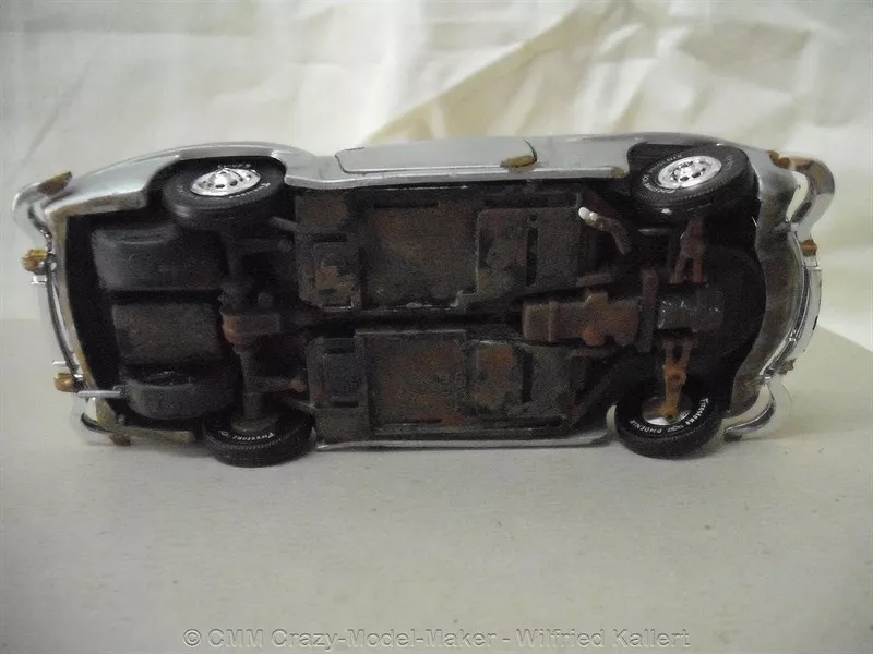 Dieser Klassiker von Mercedes Benz aus den 1960er Jahren, ist ein Luxusfahrzeug, wie sie in der Zeit des Wirtschaftswunders entstanden und auch damals schon ein gewisses Statussymbol waren. Besonders Mercedes stand für die gehobene Automobilklasse. Dieser etwas ältere Bausatz von Revell wurde von mir in vielen Bereichen stark modifiziert. Er war ein Versuchsobjekt, um verschiedene Techniken auszuprobieren. Besonders hervorzuheben ist die Alterung mit Rost und die Türen, die man öffnen kann. Es ist nicht mein schönstes Modell, doch insgesamt recht gut gelungen.